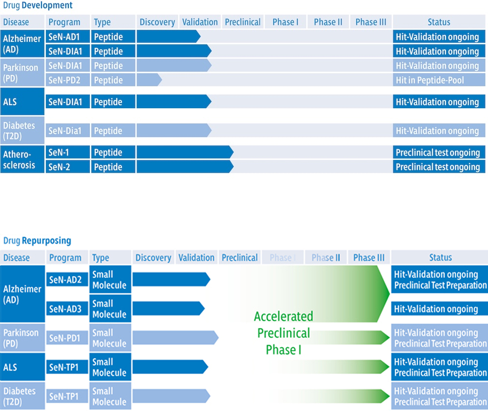 The SeNostic pipeline encompasses two programs that target areas in dire need of further research: neurodegenerative diseases and type 2 diabetes.